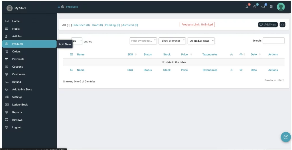 The store dashboard is your main control panel for managing your online store. Here’s a breakdown of what each part of the dashboard does:
